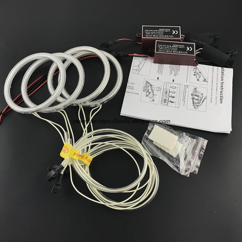 В: из чего сделаны кольца?О: в комплектах для фар HochiTech CCFL используется флуоресцентная технология XE с холодным катодом, обеспечивающая плавное и равномерное освещение ореолом. Галоши CCFL имеют предполагаемый срок службы 50000 часов непрерывной работы и имеют пожизненную гарантию. Для галограмм CCFL требуется внешний источник питания. Инверторы питания HochiTech "XE" входят в каждую систему набора ореолов HochiTech CCFL.