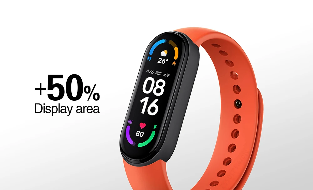 Mi Band 6 использует полноразмерный экран AMOLED runway, который имеет комплексно улучшенную Область отображения, а текстовые сообщения, вызовы inco mi ng и уведомления ясны с первого взгляда.