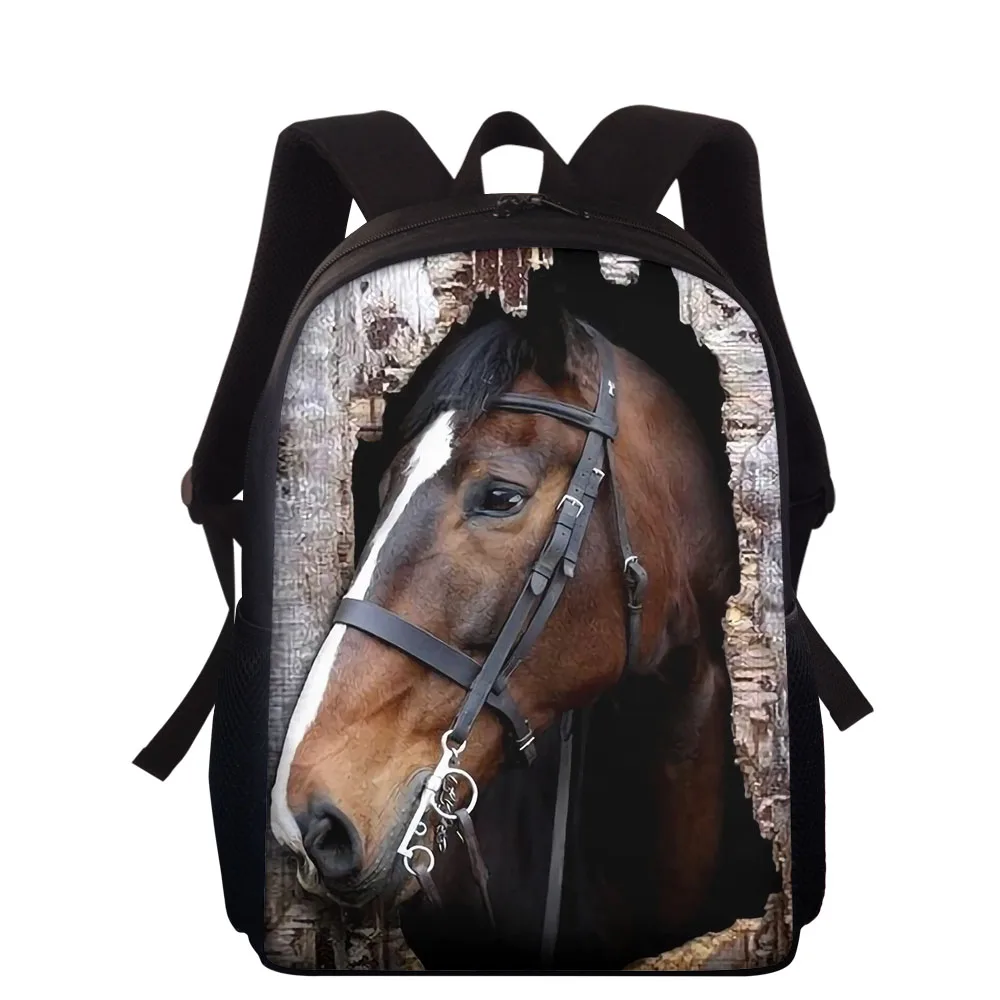 Ортопедические школьные ранцы для мальчиков и девочек, детские рюкзаки для начальной школы, сумки для учебников с 3D рисунком лошади, 15 дюймов
