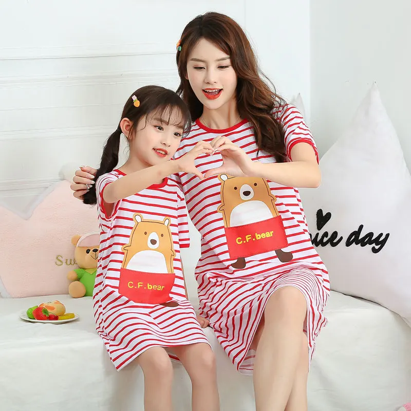 Детская ночная рубашка для девочек, хлопковая ночная рубашка для подростков, летняя детская одежда для сна, мультяшная пижама для девочек 4, 6, 8, 10, 12, 14, 16 лет