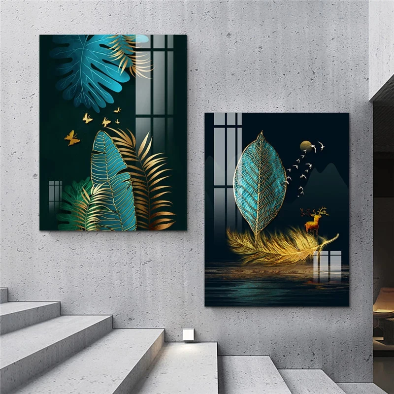 Картина в китайском стиле, зеленая и золотая, водостойкая, для домашнего декора