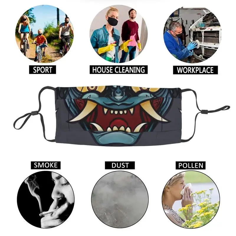 Маска демона-самурая Oni, Пылезащитная, дышащая, с татуировкой на Х...