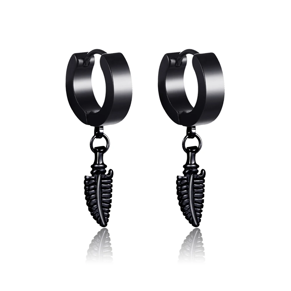 Серьги-кольца из нержавеющей стали для мужчин и женщин, маленькие трендовые круглые украшения в стиле панк, аксессуары для подарка, черные, крест кулон ювелирное изделие