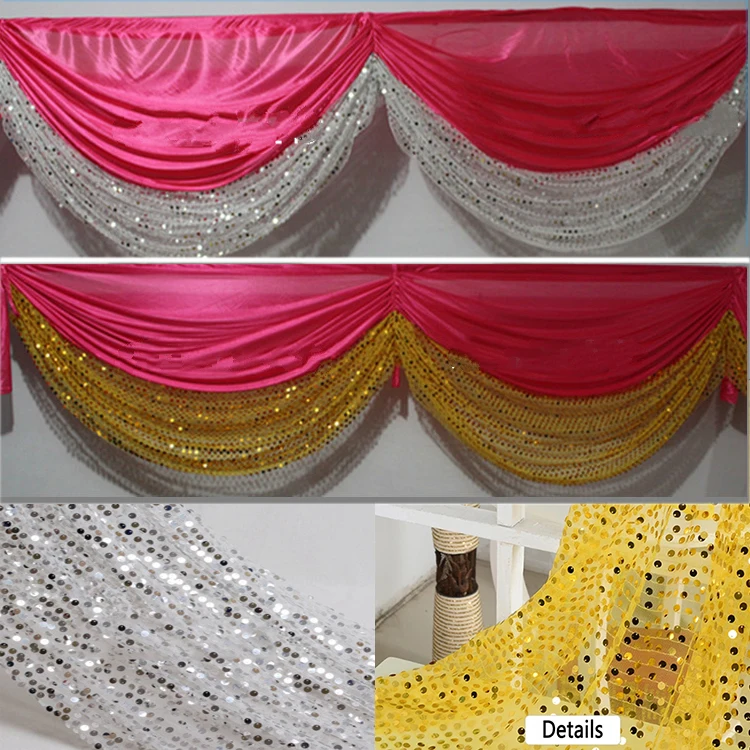 1. Размер: как указано выше (может быть на заказ)2. Каждый метр имеет один swag3. Материал: ткань из ледяного шелка + Блестки (прозрачная), если вам это не нравится, пожалуйста, не покупайте!4. Учитывая, что это импортный товар, поэтому иногда он может иметь таможенную пошлину, если вы не хотите платить дополнительные.5. Пожалуйста, купите его на местном рынке. Большое спасибо за сотрудничество.6. Цвет: может быть настроен, оставьте нам номер цвета, который вы хотите7. Реальные эффекты зависят от того, как вы его проектируете8. Может быть небольшая разница в цвете от реального и цветовая Таблица9. Материал-ткань из ледяного шелка, учитывая, что это украшение, то, что мы видим,-это все эффекты для демонстрации10. У вас есть строгий спрос на шитье, просто не покупайте его, большое спасибо6. Цена указана только за задник, не включая трубу
