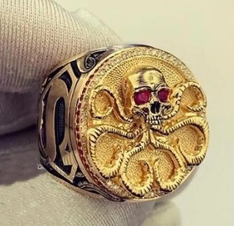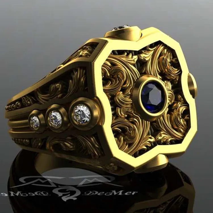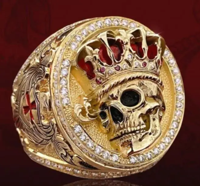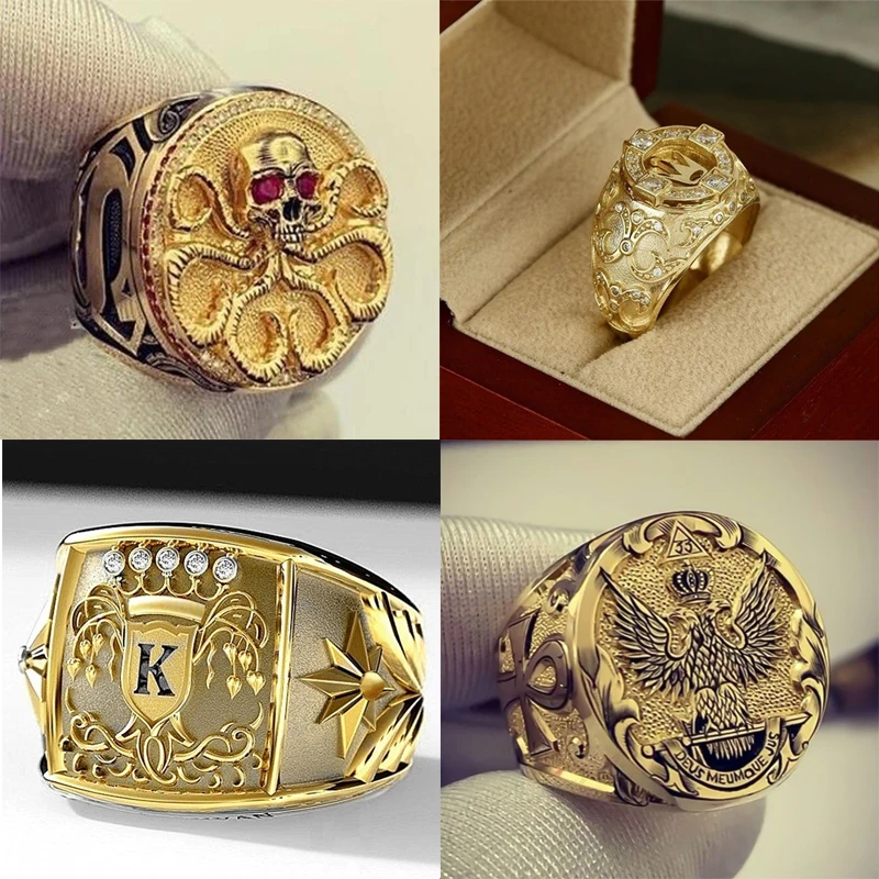 Мужские кольца в стиле панк, золотистые кольца с кристаллами и рису...