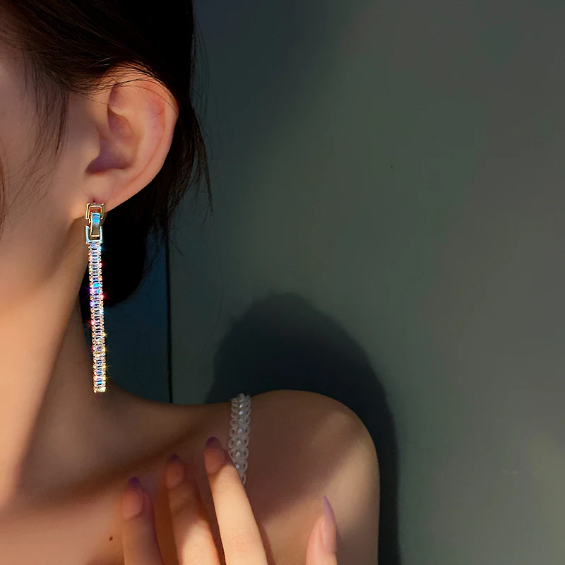 OLIRAFT 2021 тренд Циркон Кристалл кисточка длинные висячие серьги ...