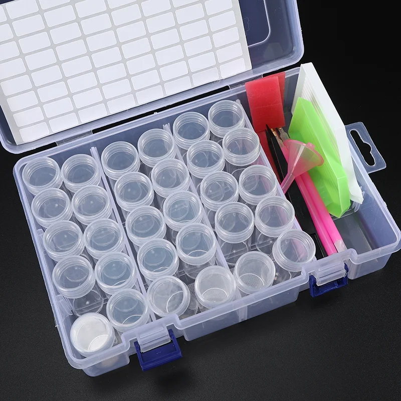 Высокое качество. Коробка для хранения алмазных принадлежностей изготовлена из прозрачного материала PP, экологически чистый, прочный и прочный, практичный и устойчивый к повреждениям. Легкий и компактный дизайн, легко носить с собой.