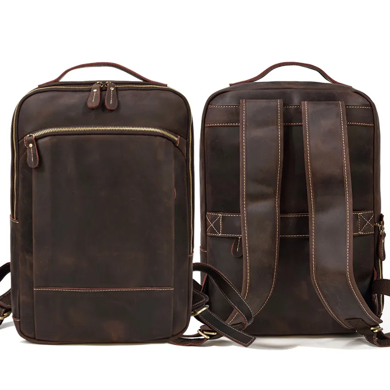 Рюкзак мужской из натуральной кожи, Вместительная дорожная сумка для ноутбука и компьютера, ранец из кожи Крейзи Хорс для мальчиков