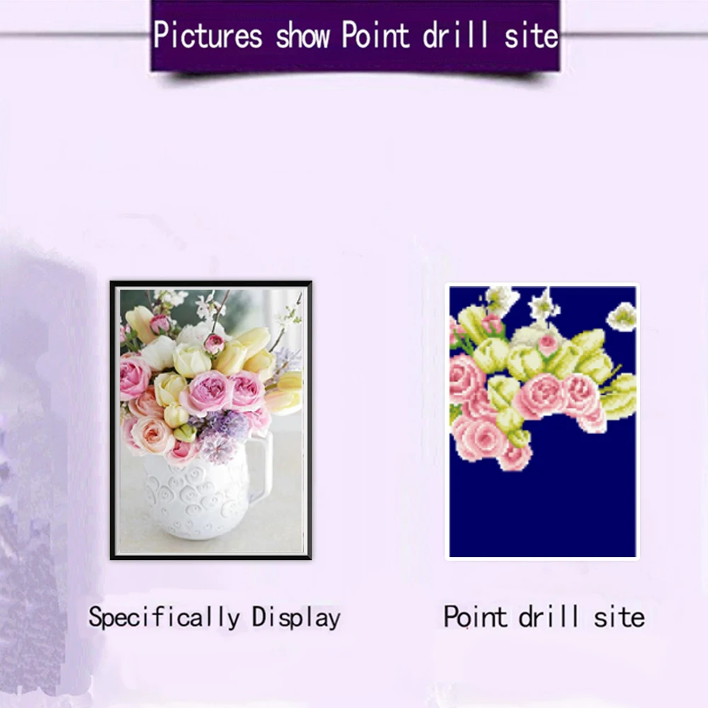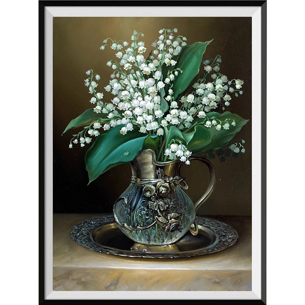 Pintura de diamantes artesanales 5D, jarrn, punto de Крус, flor de ...