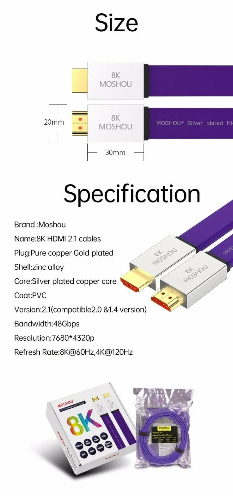 MOSHOU HDMI-совместимый 2,1 кабель Ultra-HD (UHD) 8K HDMI-совместимый 2,1 кабель 48Gbs с аудио и Ethernet шнур