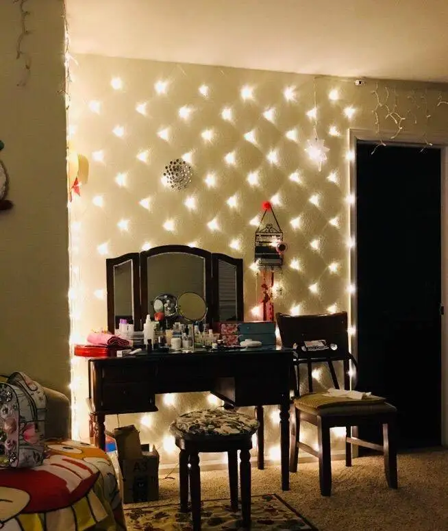 Сетчатые лампы имеют хорошо разветвленный дизайн и теплый белый свет и красиво освещают всю комнату. В штепсельной вилке есть небольшая кнопка, которая контролирует множество различных режимов освещения, что делает его таким красивым фоном, которым я действительно наслаждаюсь и привлекательным. Я думаю, что эти удивительные светящиеся огни могут украсить любой случай.