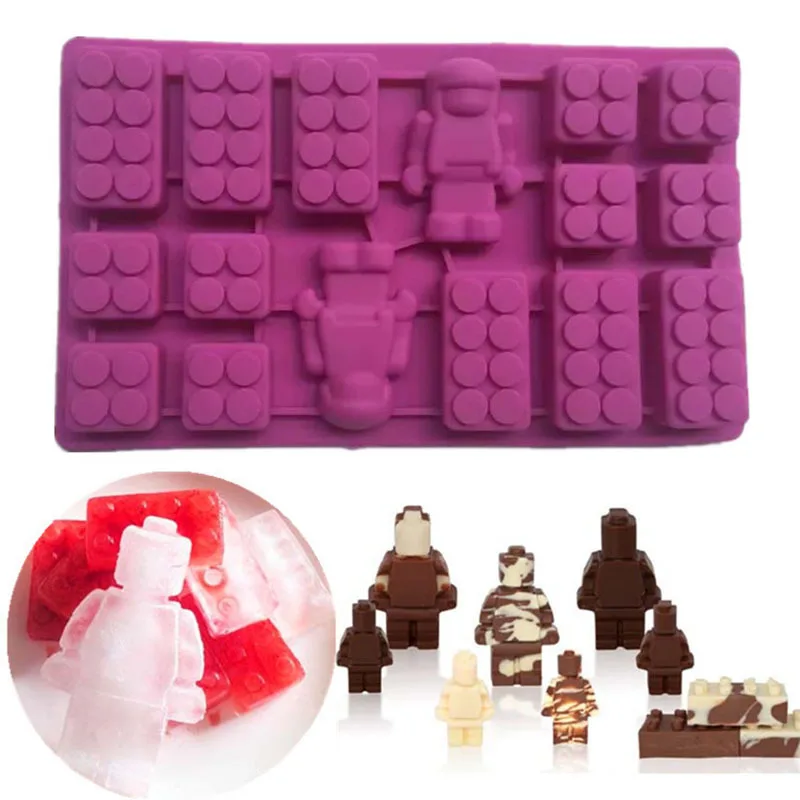 Новые Строительные блоки, силиконовая форма для льда в виде робота, для самостоятельного изготовления шоколада, штукатурка, помадки, инструмент для украшения