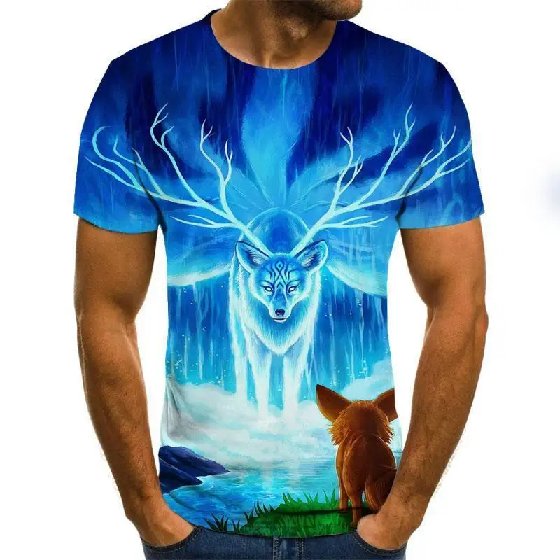 Футболка с коротким рукавом, в стиле хип-хоп, с 3D-принтом оленя, д...