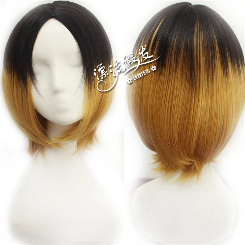Парик для средней школы и Волейбольного клуба Аниме Haikyuu Karasuno, для косплея кенмы козуме, черно-золотистые волосы из синтетики, для косплея с шапочкой