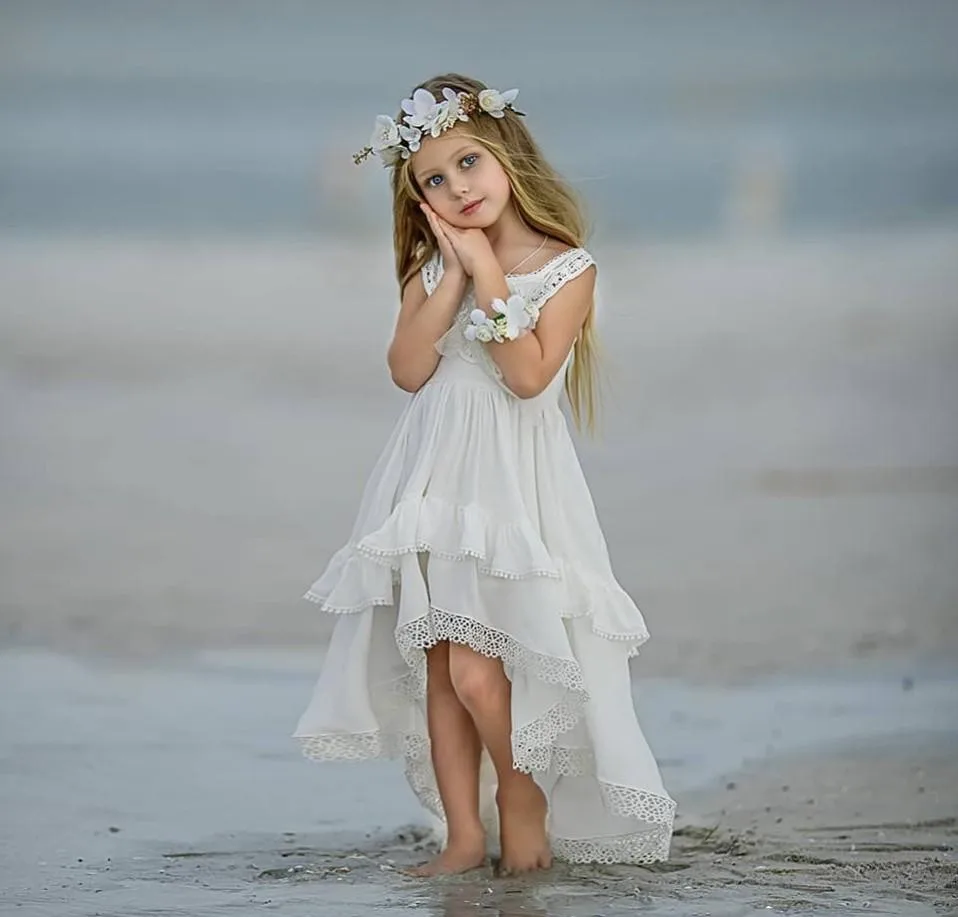 Кружевные платья с низким кружевом для девочек, пляжное платье для свадьбы, вечеринки, конкурса, ТРАПЕЦИЕВИДНОЕ ПЛАТЬЕ в стиле бохо для детей, для первого Святой причастия, пикантные детские изображения