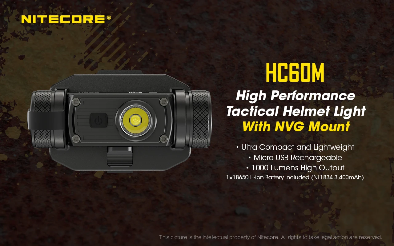 NITECORE HC60M 1000 люмен CREE U2 LED + NVG крепление 18650 Перезаряжаемые шлем с батареей светильник Водонепроницаемый спортивные сумки для путешествий; Бесплатная доставка