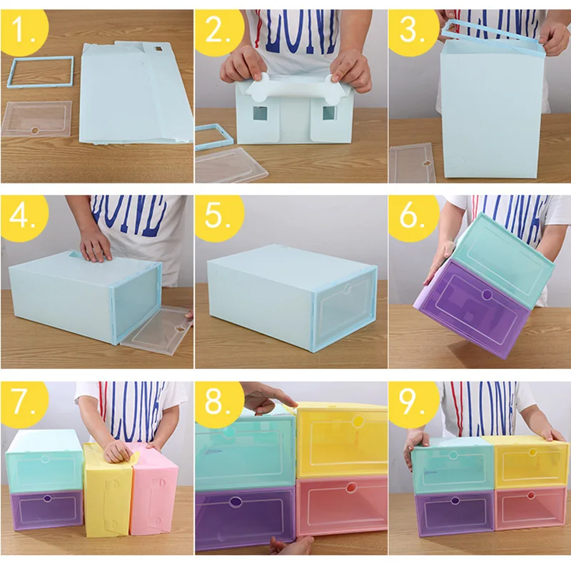 6 шт. раскладушка прозрачная обувь хранения Коробки Пластик утолщенной Организатор бытовой Diy обуви ящик для хранения дома инструменты