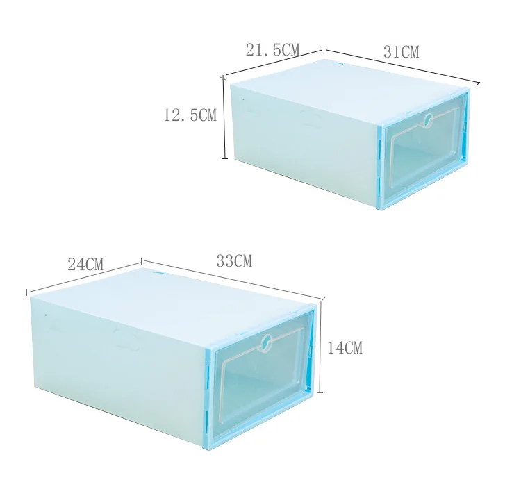 Размеры и областей применения: размер этих штабелируемые коробки для обуви составляет 33*24*14 см/31*21,5*12,5 см. Одна пара в одной коробке.