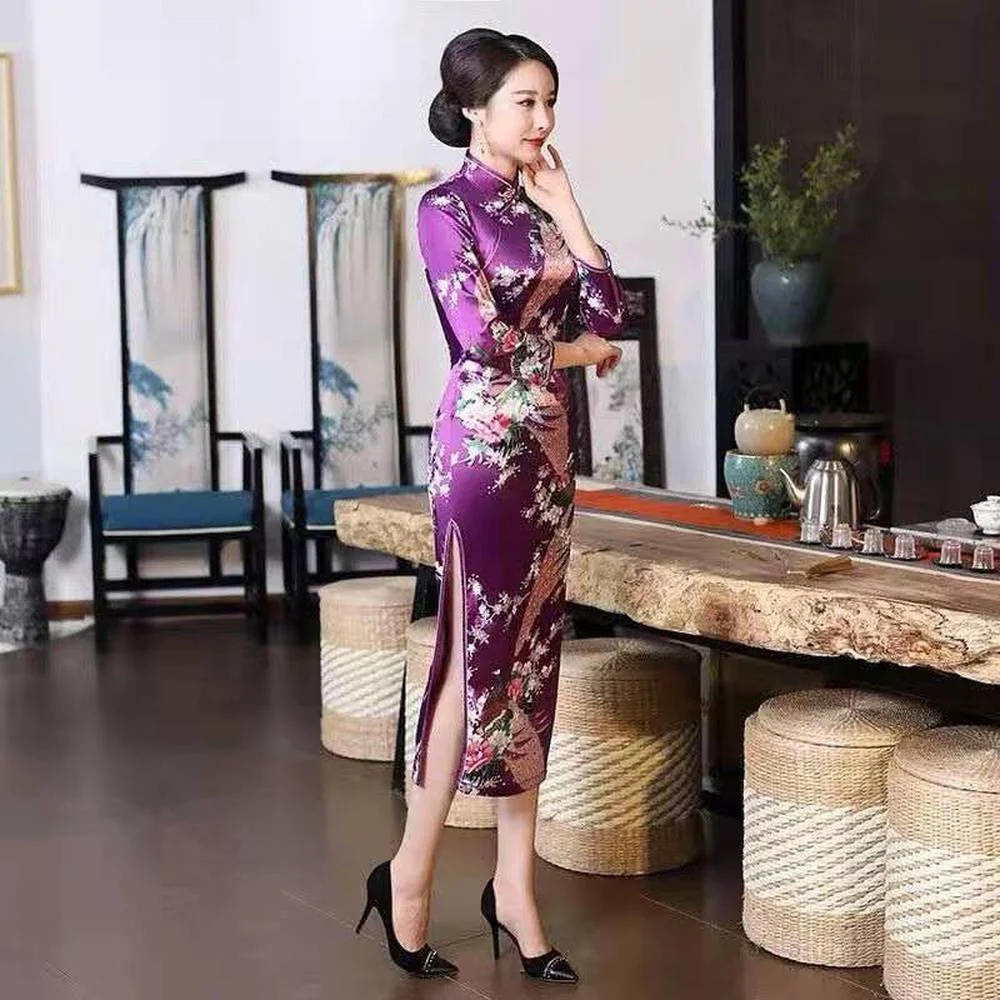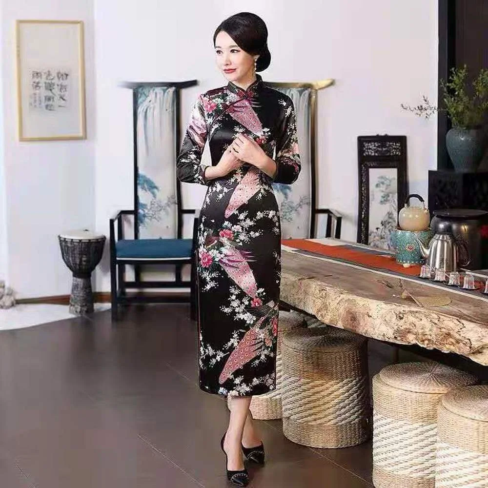 Весеннее китайское традиционное длинное платье-Ципао, винтажные Шел...