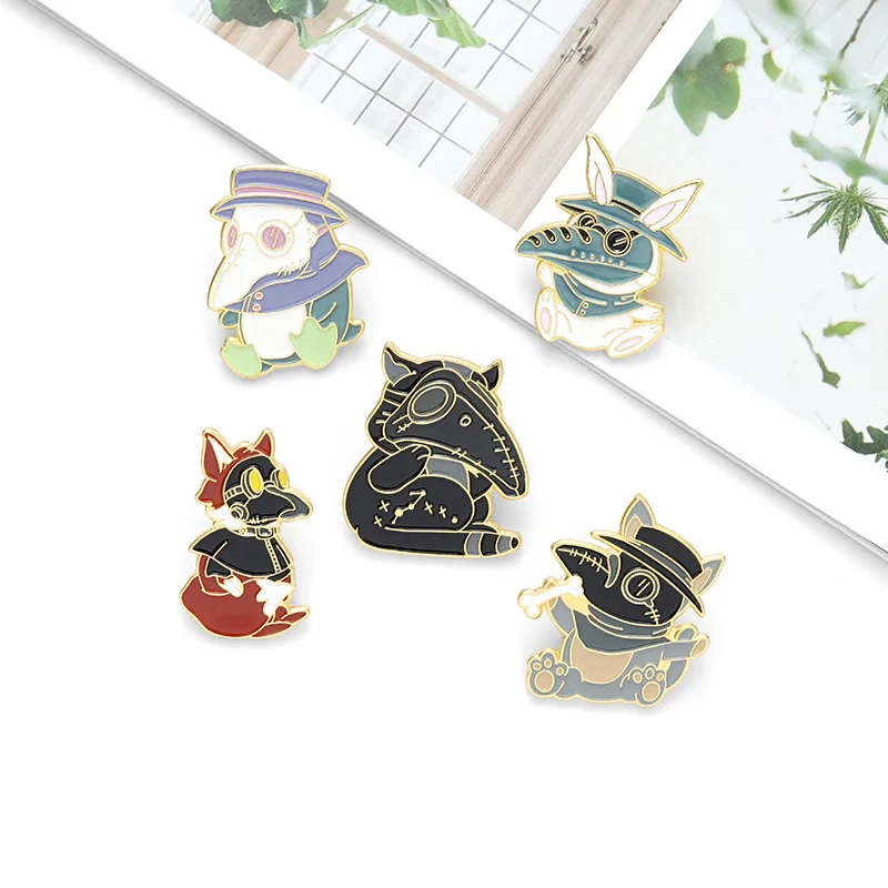Значок на лацкан с эмалью в виде животных Чумного доктора, лиса, кр...
