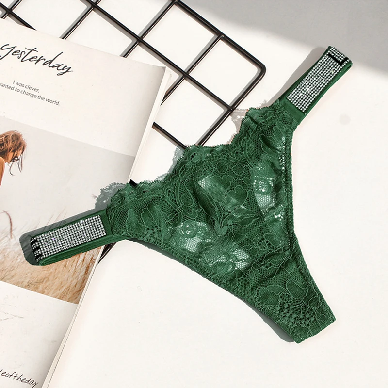 Стринги женские кружевные, прозрачные, со стразами, в европейском стиле, низкая талия Бесшовные