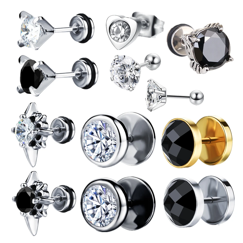 Серьги-гвоздики из нержавеющей стали с черным цирконием для мужчин и женщин, ювелирные украшения для ушей в стиле панк, рок, хип-хоп, аксессуары для мужчин и женщин, 2021
