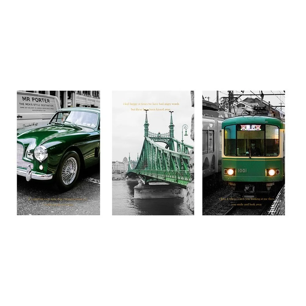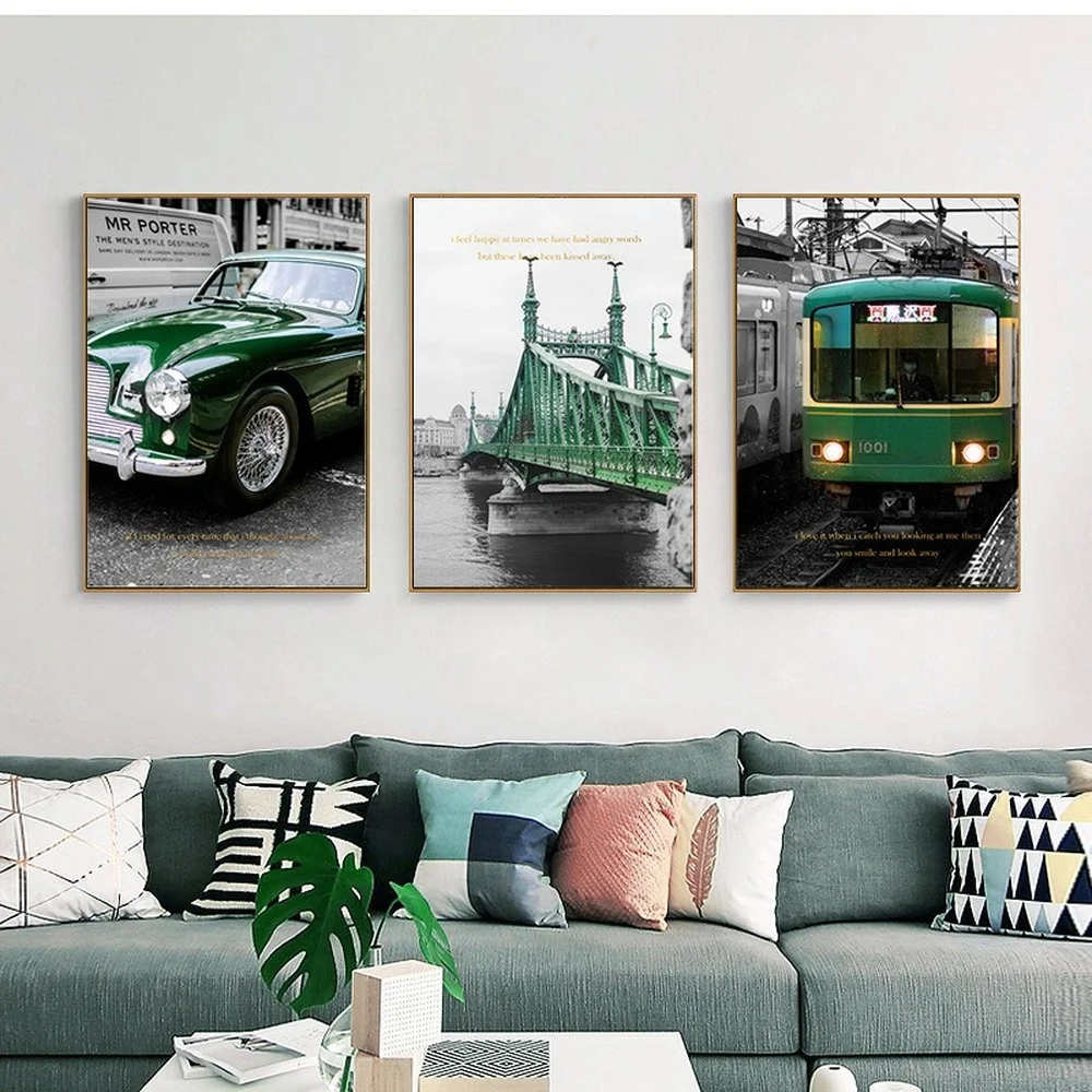 Винтажный промышленный городской пейзаж, Картина на холсте, ретро, Зеленый автомобильный мост, постер с поездом, декор для кафе, гостиной, эстетические картины