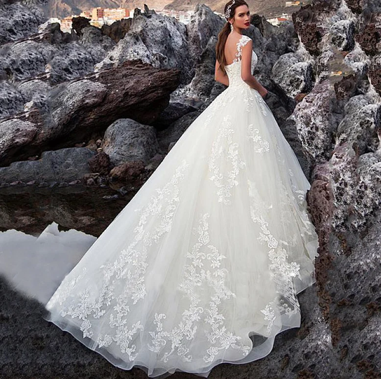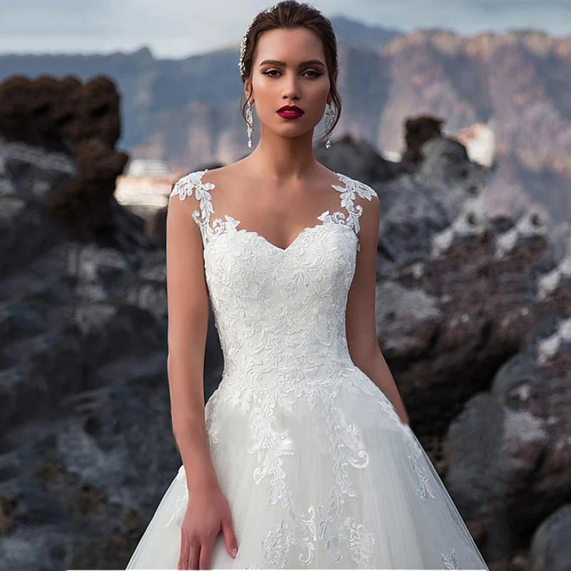 Свадебное платье из тюля с кружевной аппликацией, свадебное платье ...