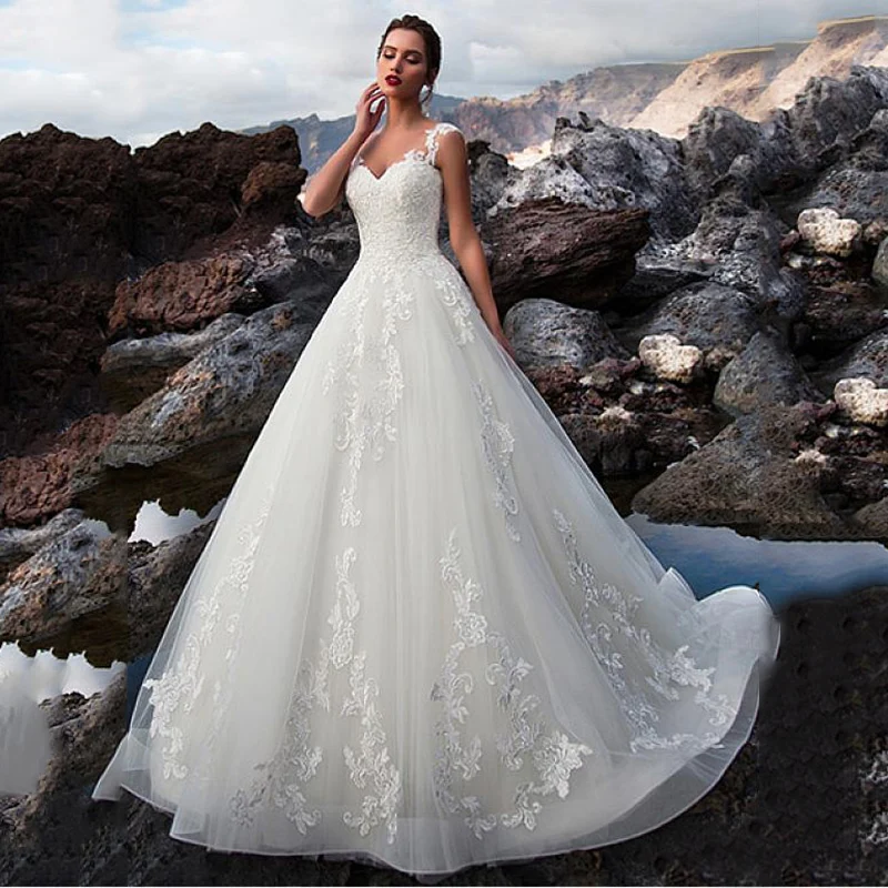 Сексуальный, кружевной, с аппликацией без рукавов с v-образным вырезом, свадебное платье на шнуровке свадебное платье, белое цвета слоновой кости свадебные платья для принцесс