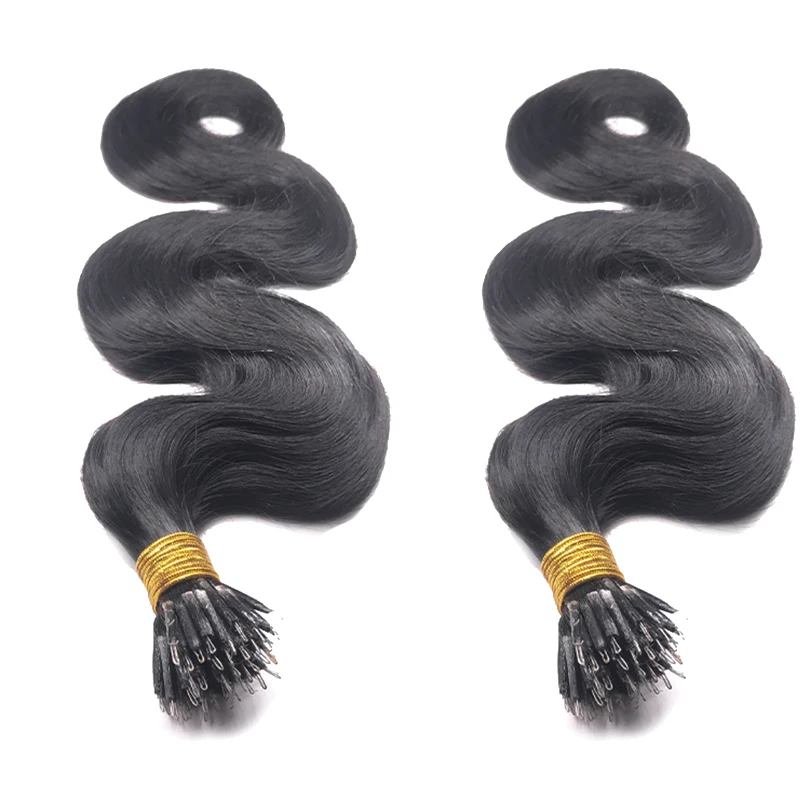 Нано-кольцо, микро-волосы для наращивания, объемная волна, натуральный коричневый цвет, бразильские волосы Remy для наращивания, 8 дюймов-30 дюймов