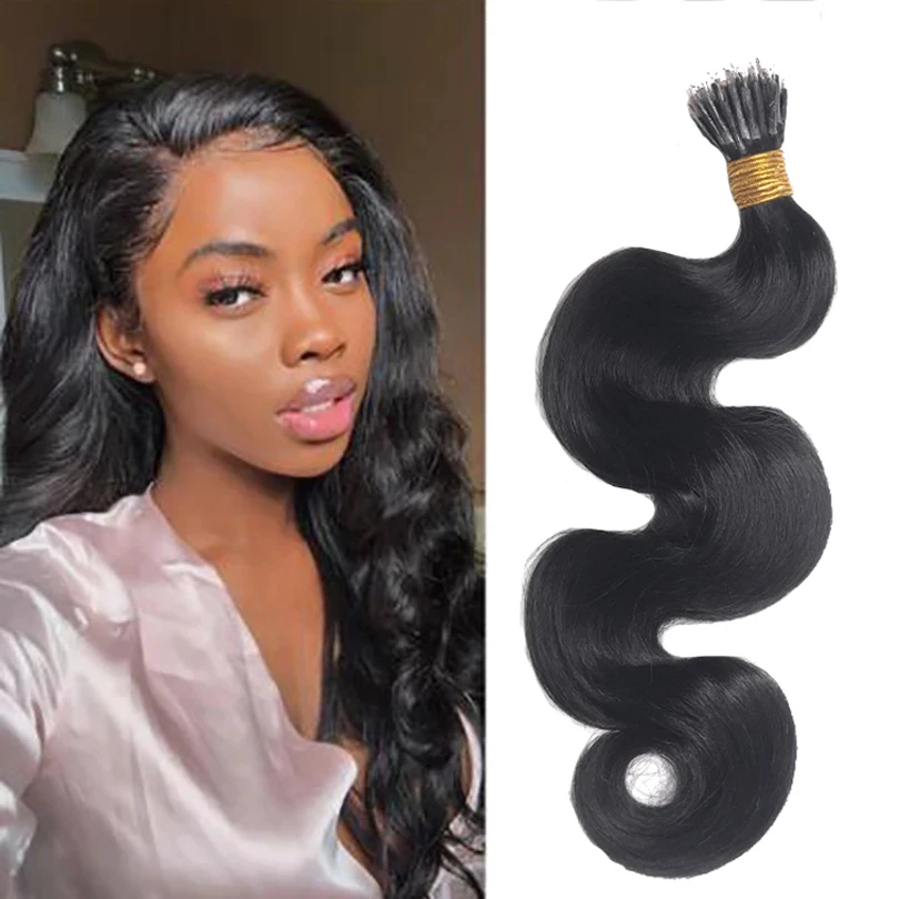 Кудрявые прямые человеческие волосы с I-образными кончиками, бразил...