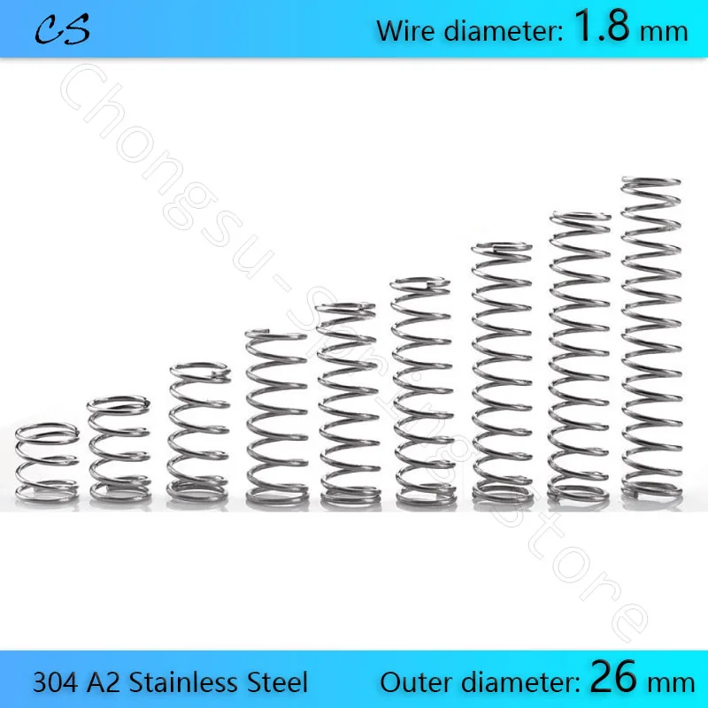 1,8 мм Пружина сжатия 304 A2 пружины из нержавеющей стали проволока диаметром 1,8 мм внешний диаметр 26 мм длина 15 20 25 30 35 40 45 50 мм