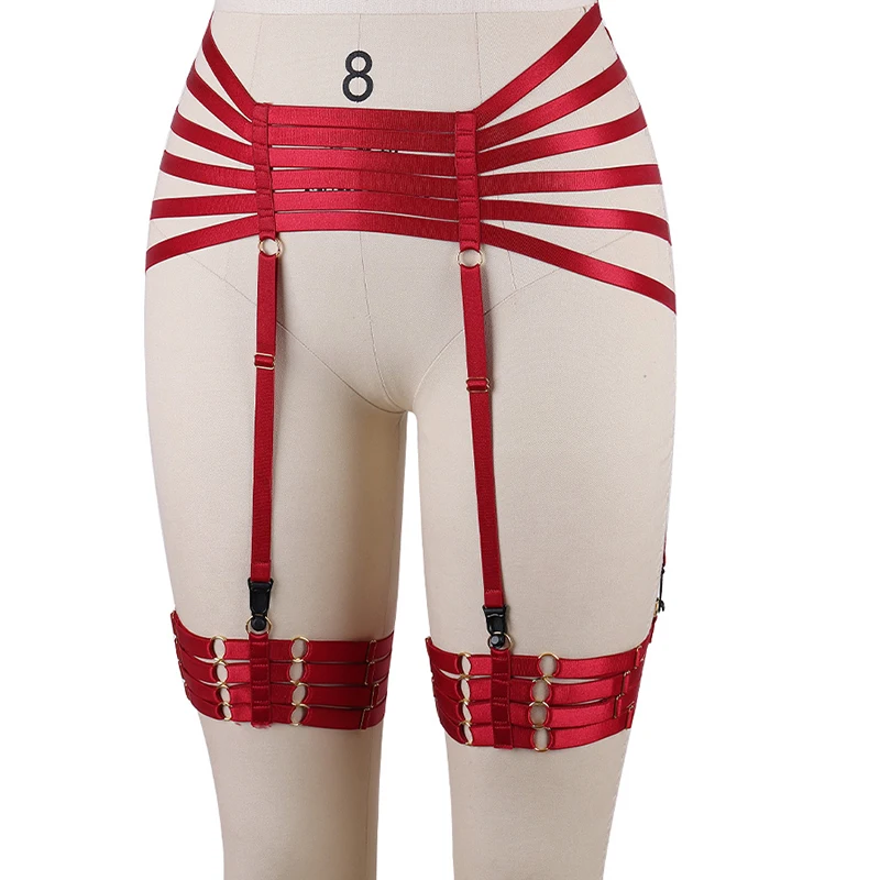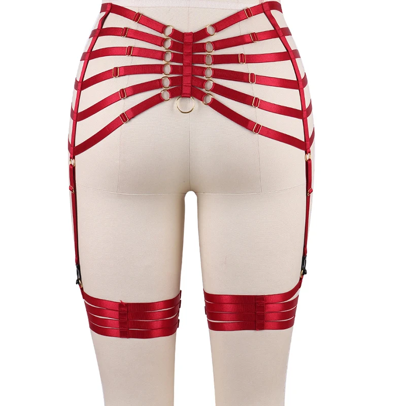 JLX. Упряжь красный пояс с резинками тела жгут бондаж пояс для подтяжек эластичная Регулировка ремешка нижнее белье в готическом стиле Фетиш Одежда для танцев