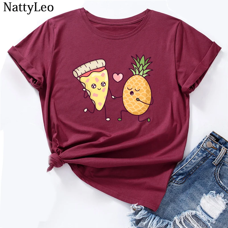 Женская футболка большого размера из 100% хлопка с принтом ананасов и круглым вырезом