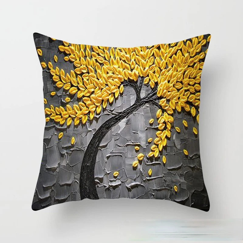 Подушка для подушки с рисунком масляной краской 45x45 Цветочное дер...