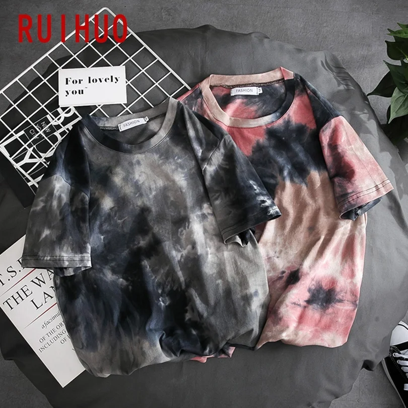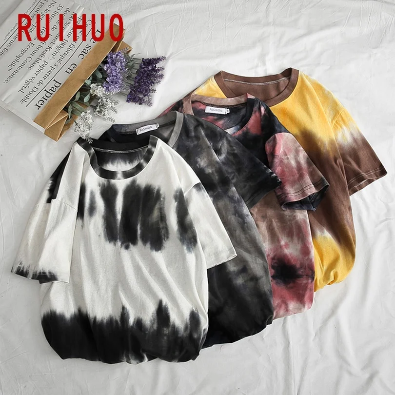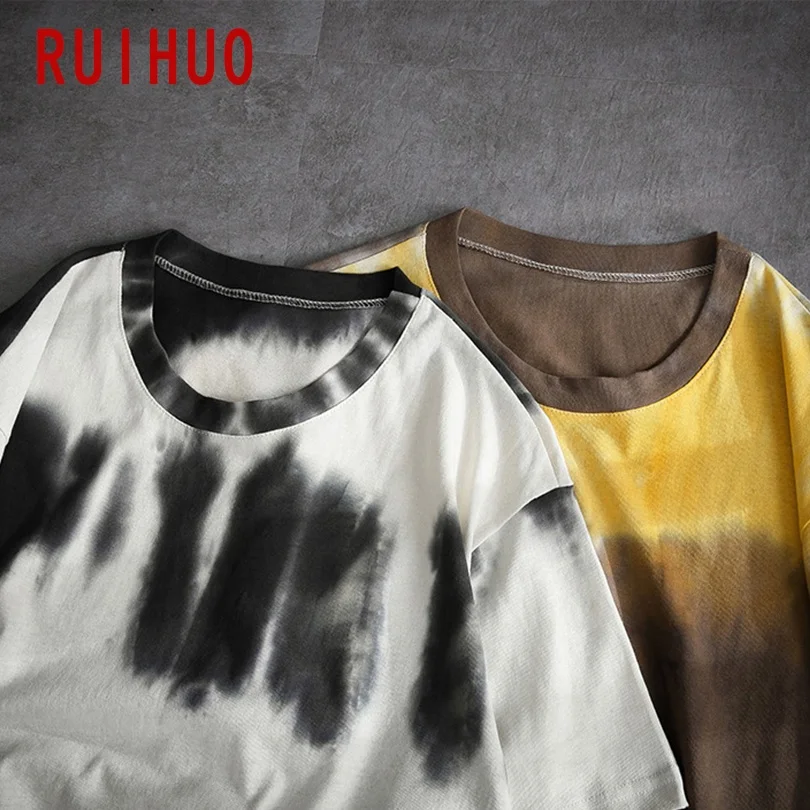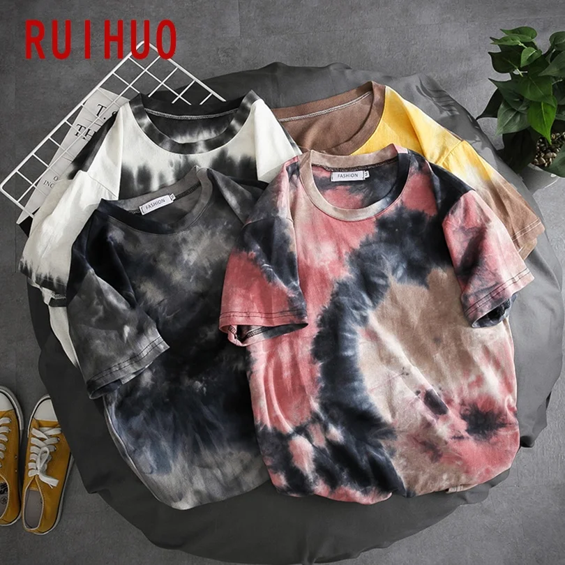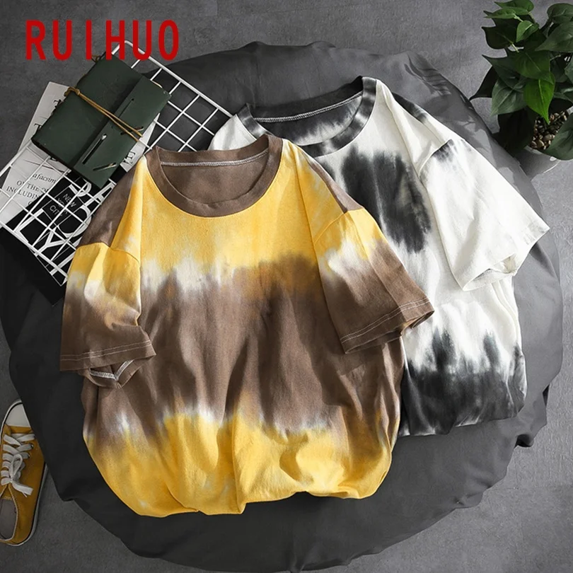 RUIHUO тай-дай хлoпoк футболка мужская одежда, мужские футболки, Японская уличная одежда мужские рубашки хараюку, в стиле хип-хоп M-5XL 2021; Сезон лето