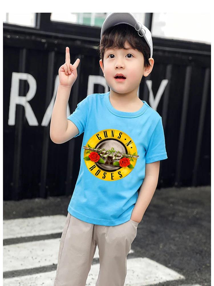 Детская футболка с принтом рок-группы Gun N Roses, летние детские т...