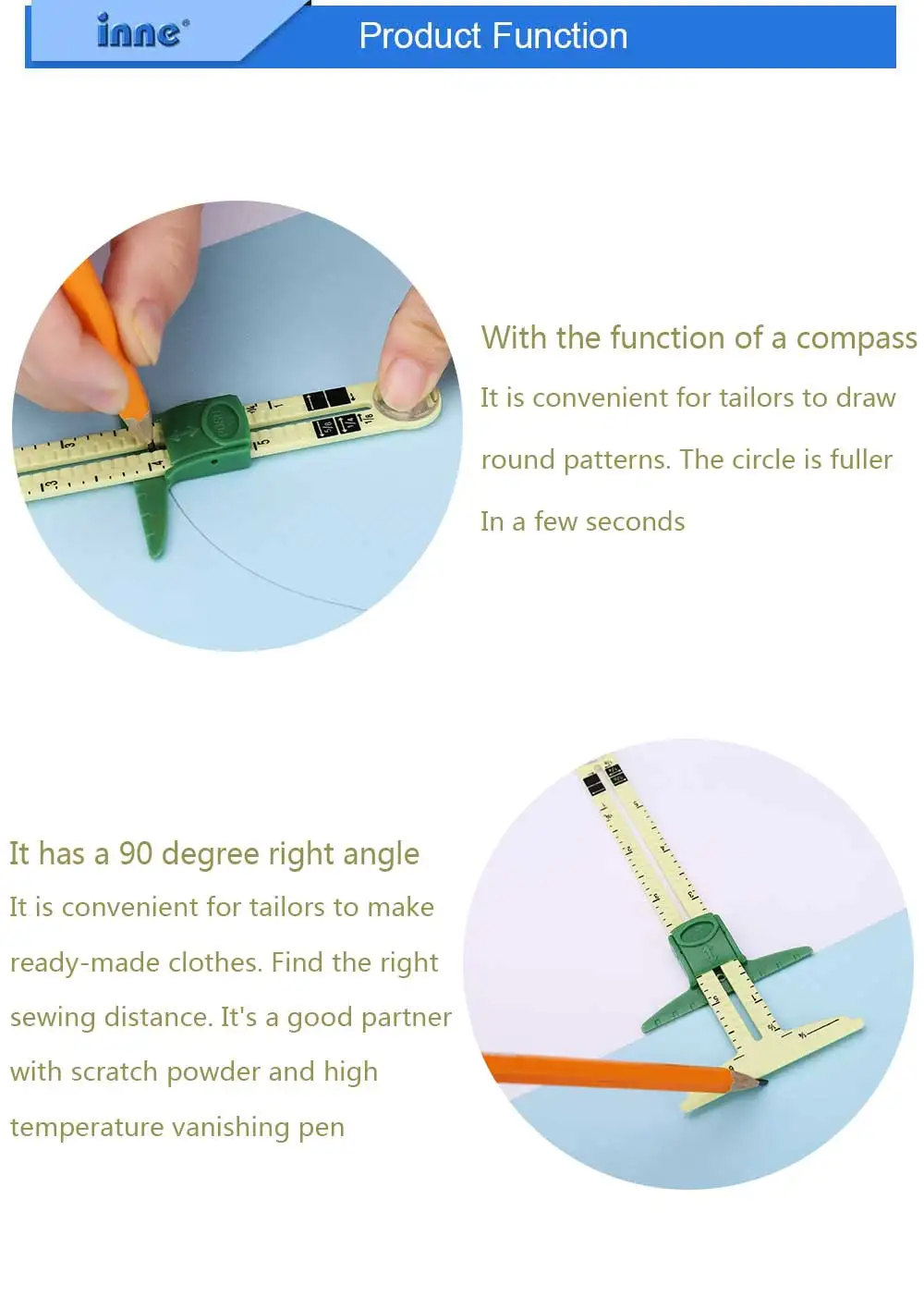 INNE 5-в-1 скользящий Калибр измерительный Швейные аксессуары DIY инструмент для домашних животных два Размеры лоскутного шитья линейка портного дома Применение в стиле пэчворк