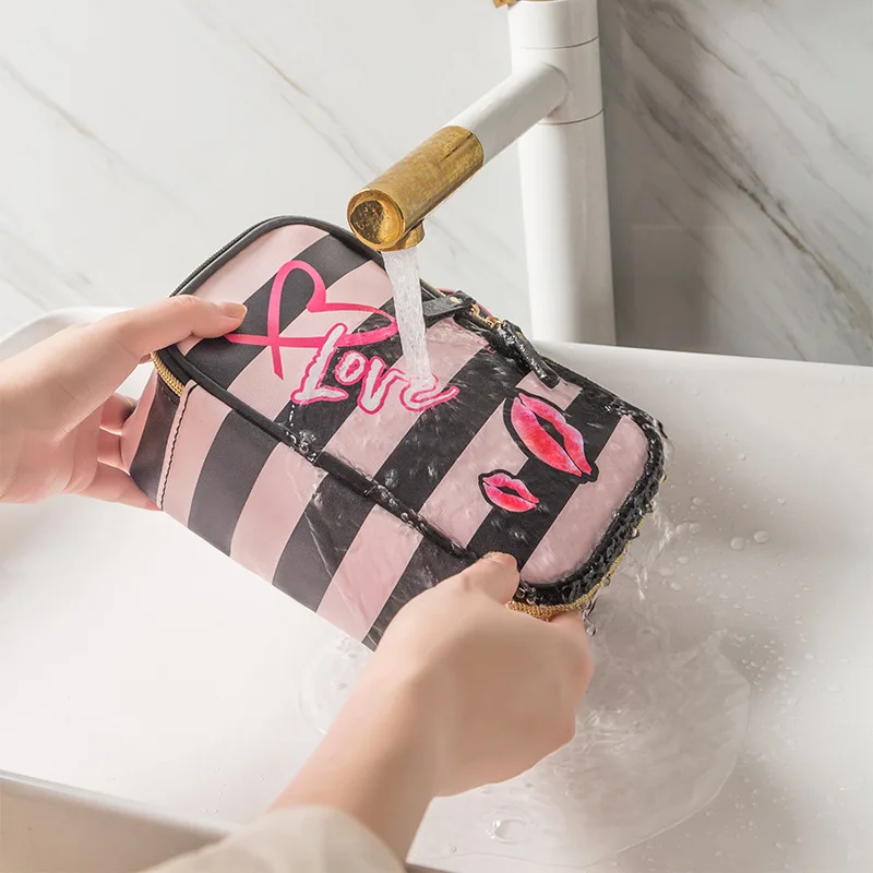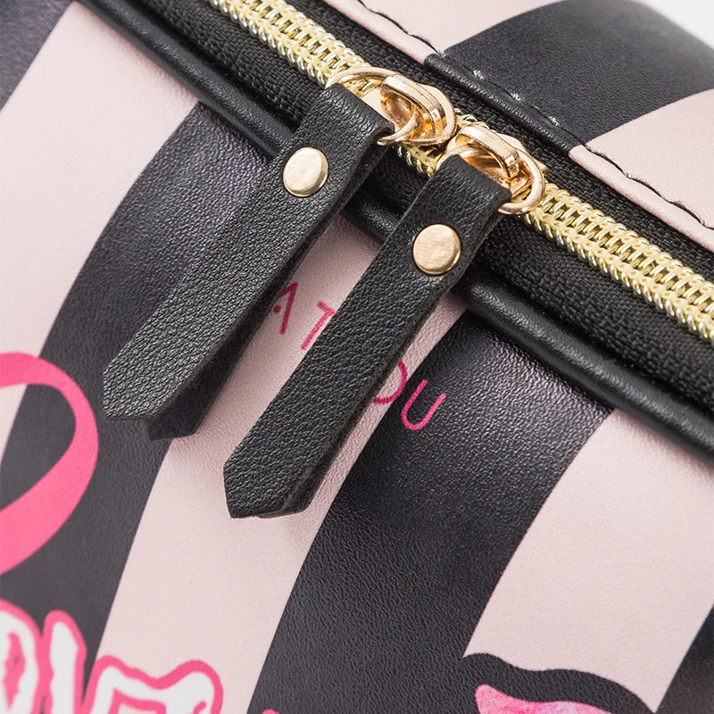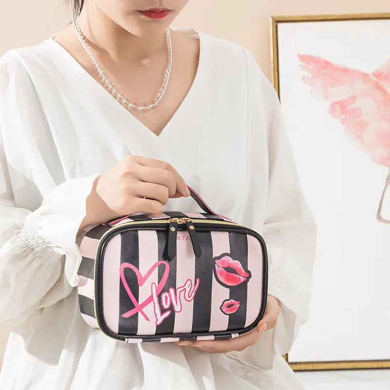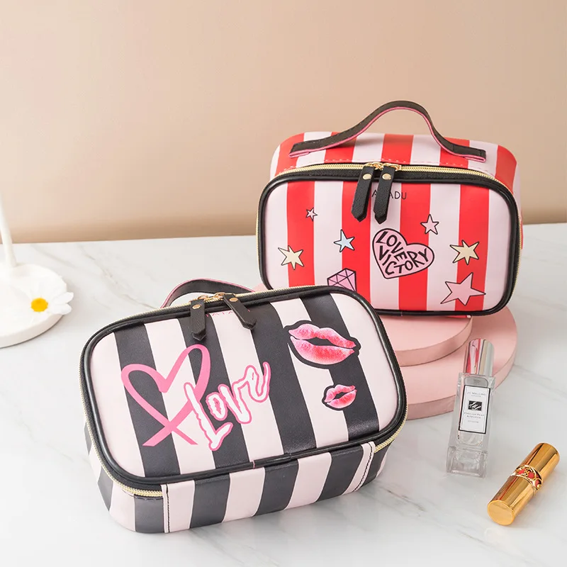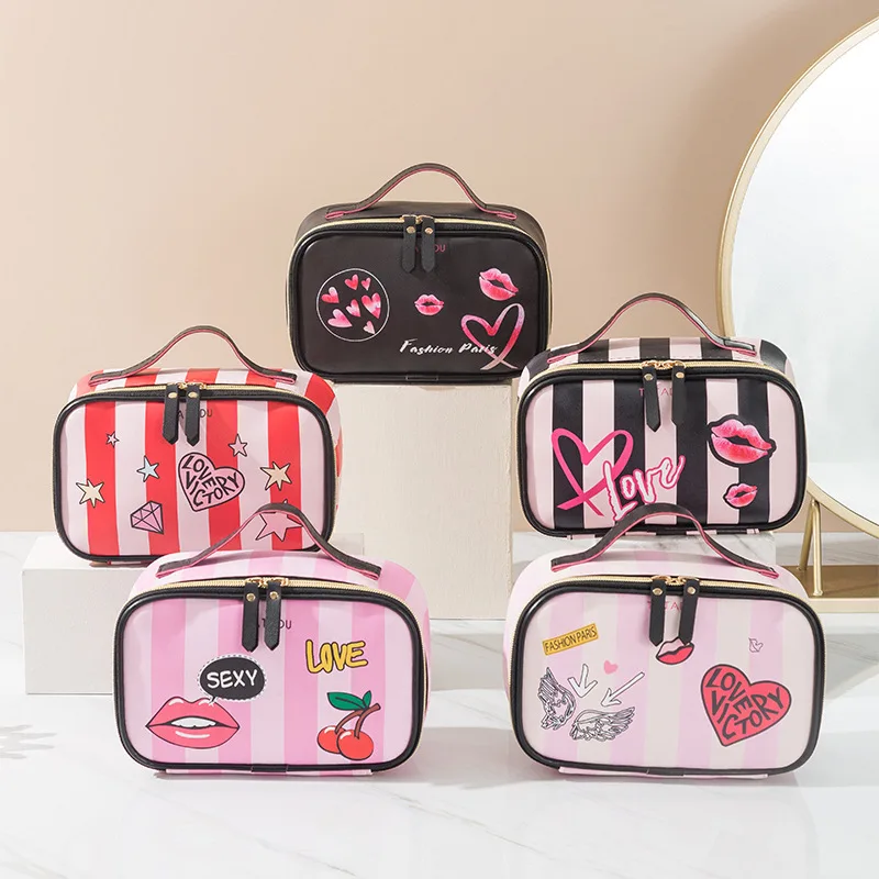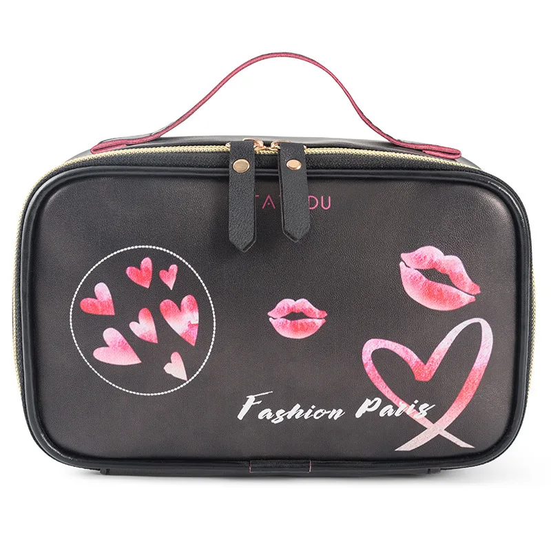 Женский Органайзер FUDEAM, из искусственной кожи, с узором в виде сердца и губ, многофункциональная сумочка-косметичка, водонепроницаемый, дорожный кейс для косметики