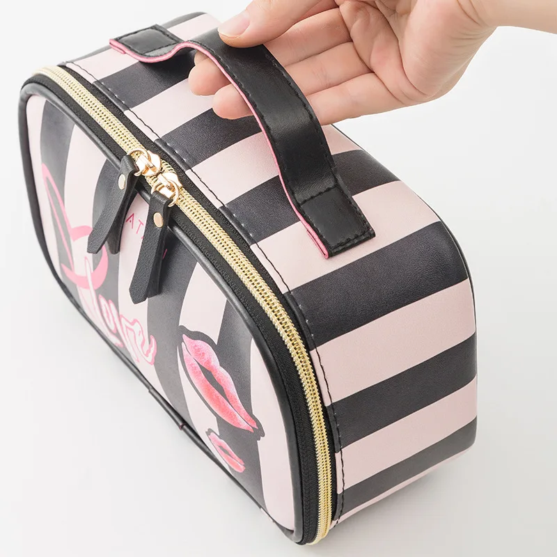 Модная женская косметичка в полоску, сумка для путешествий из искус...