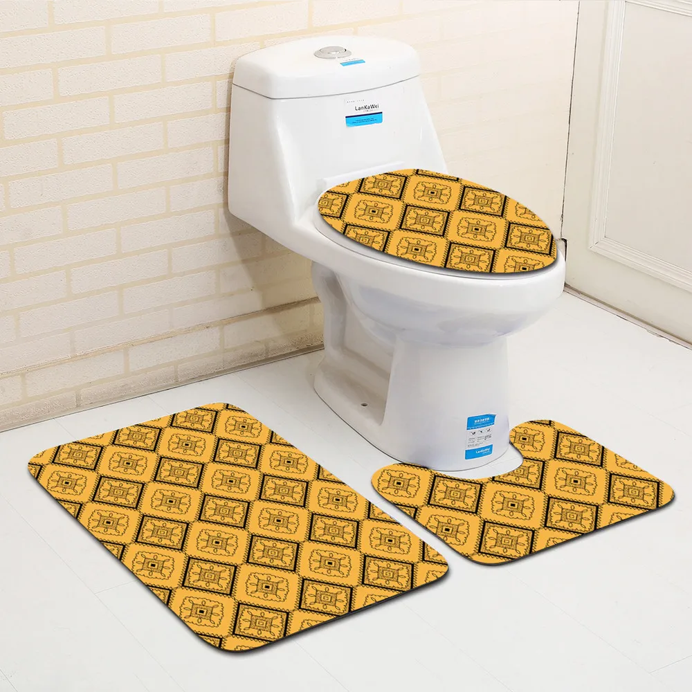Характеристики продукта: Комплект из 3 предметов (прямоугольный коврик + u-образный коврик для унитаза + чехол для унитаза) Прямоугольный Коврик: 45x75 см. U-образный коврик для унитаза: 40x45 см. Набор чехлов для унитаза: 38x40 см.