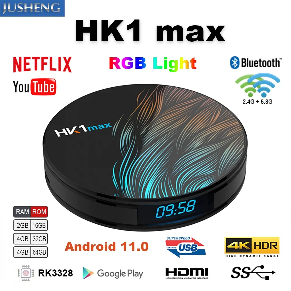 HK1MAX Android 10,0 Смарт ТВ коробка Четырехъядерный 2,4G/5G Wifi BT 4,0 DDR3 4K HDR медиаплеер HK1 MAX Мини телеприставка Google