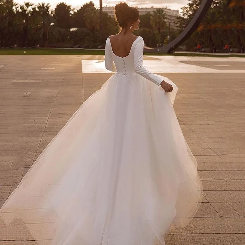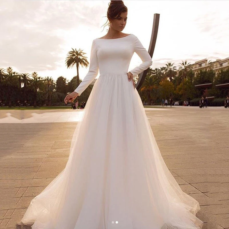 Свадебное платье LUXIYIAO LO128 с длинным рукавом, платья невесты с тюлевой юбкой, платья для женщин, свадебные платья принцессы