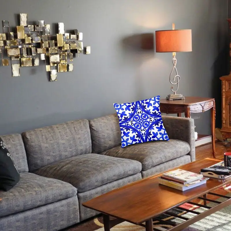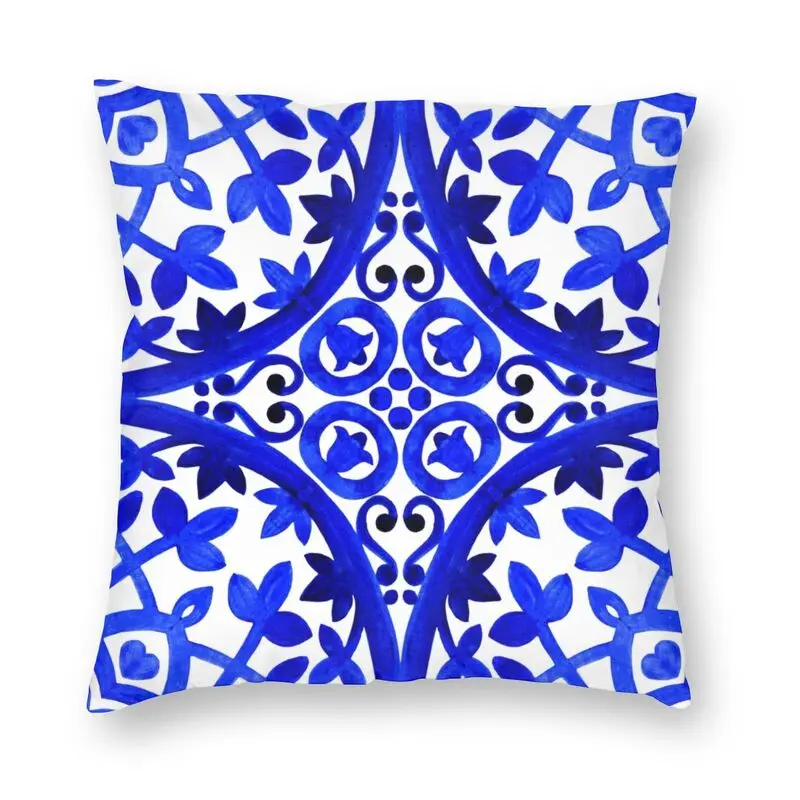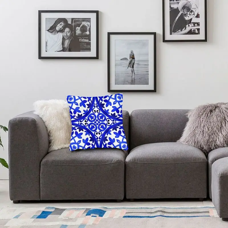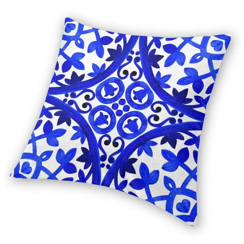 Декоративная наволочка Azulejo, голубая наволочка для дивана, двусторонняя печать, подушка "фарфор"