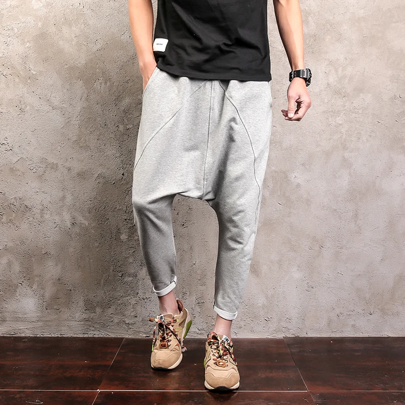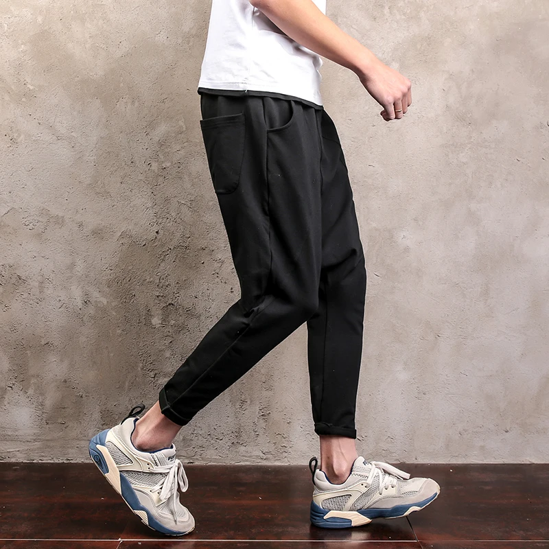 Модные шаровары, мужские брюки-Кроссбоди, свободные черные спортивные брюки, мужские брюки в стиле хип-хоп, повседневные мужские брюки, штаны для бега KZ571
