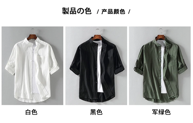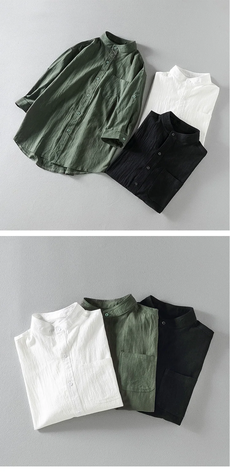 Мужская одежда 2021 Мужская льняная футболка мужская мода стоячий в...