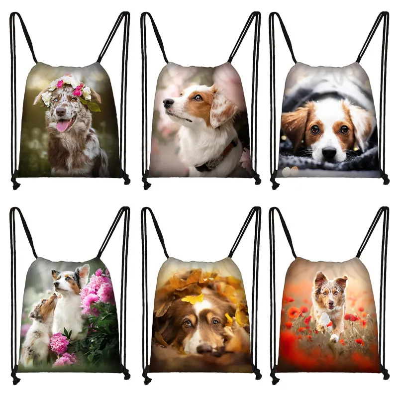 Сумка на шнурке с принтом в виде собаки, женская, Подростковая дорожная сумка, модные сумки для хранения, женские сумки для покупок