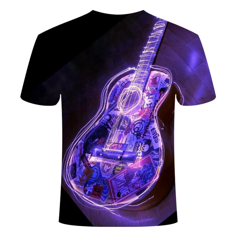 Футболка унисекс, с 3D-принтом, фиолетовая, светящаяся гитара, Повс...