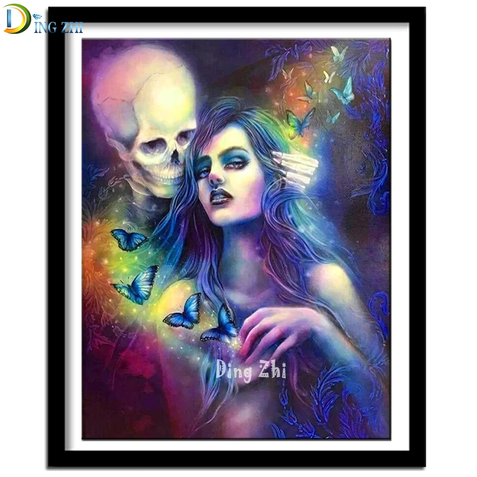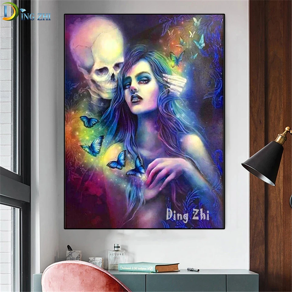 5D DIY Алмазная картина череп женщина фантазия квадрат/круглая дрель Алмазная вышивка бабочка вышивка крестом Стразы Мозаика Декор