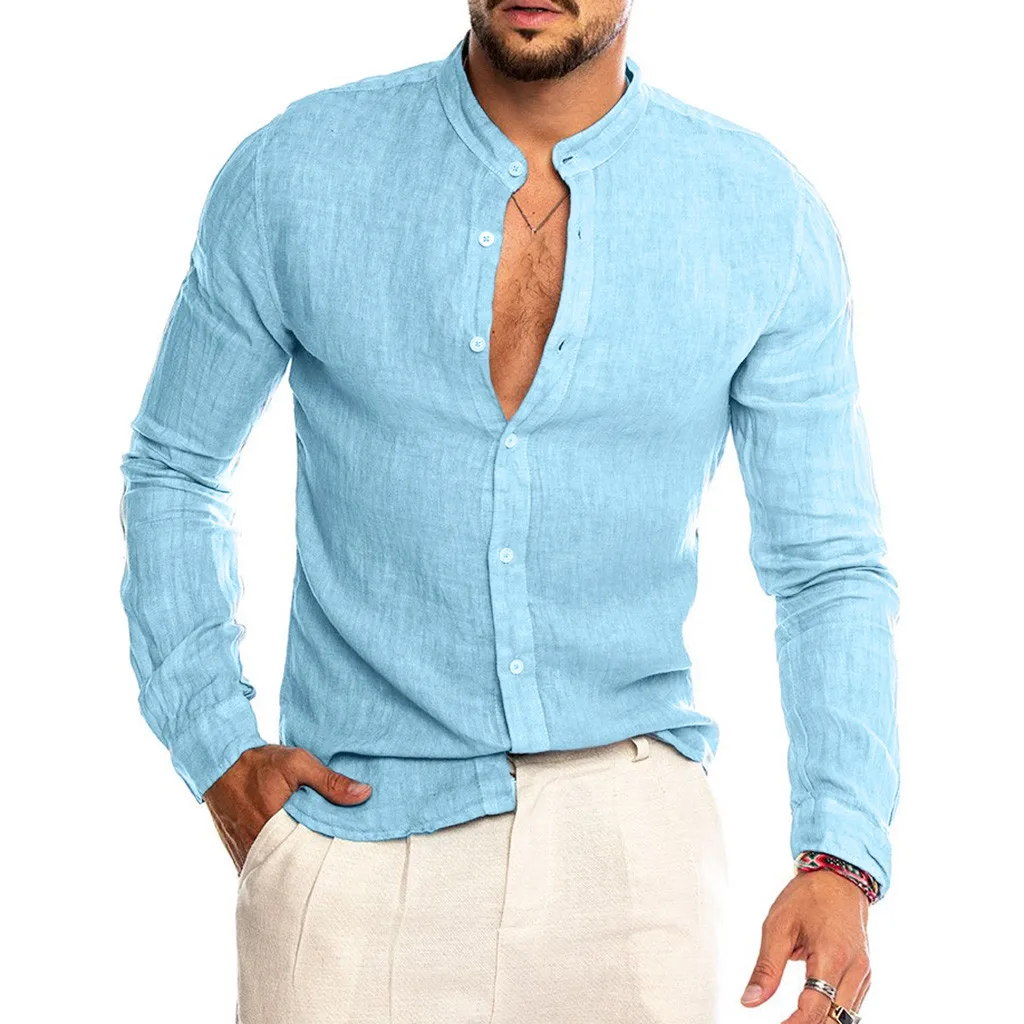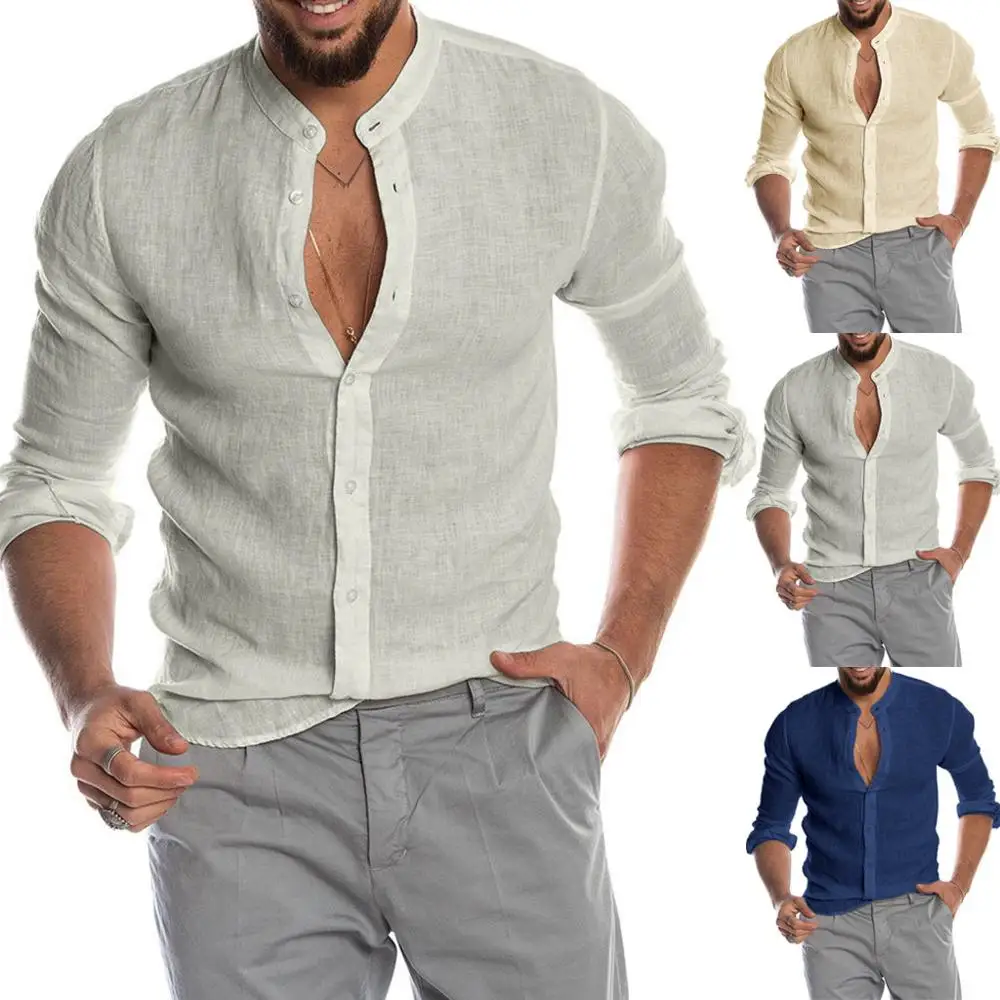 Новинка 2020, мужская повседневная блузка, рубашка из хлопка и льна, свободные топы, футболка с коротким рукавом, весна-осень, Летняя Повседневная Красивая мужская рубашка